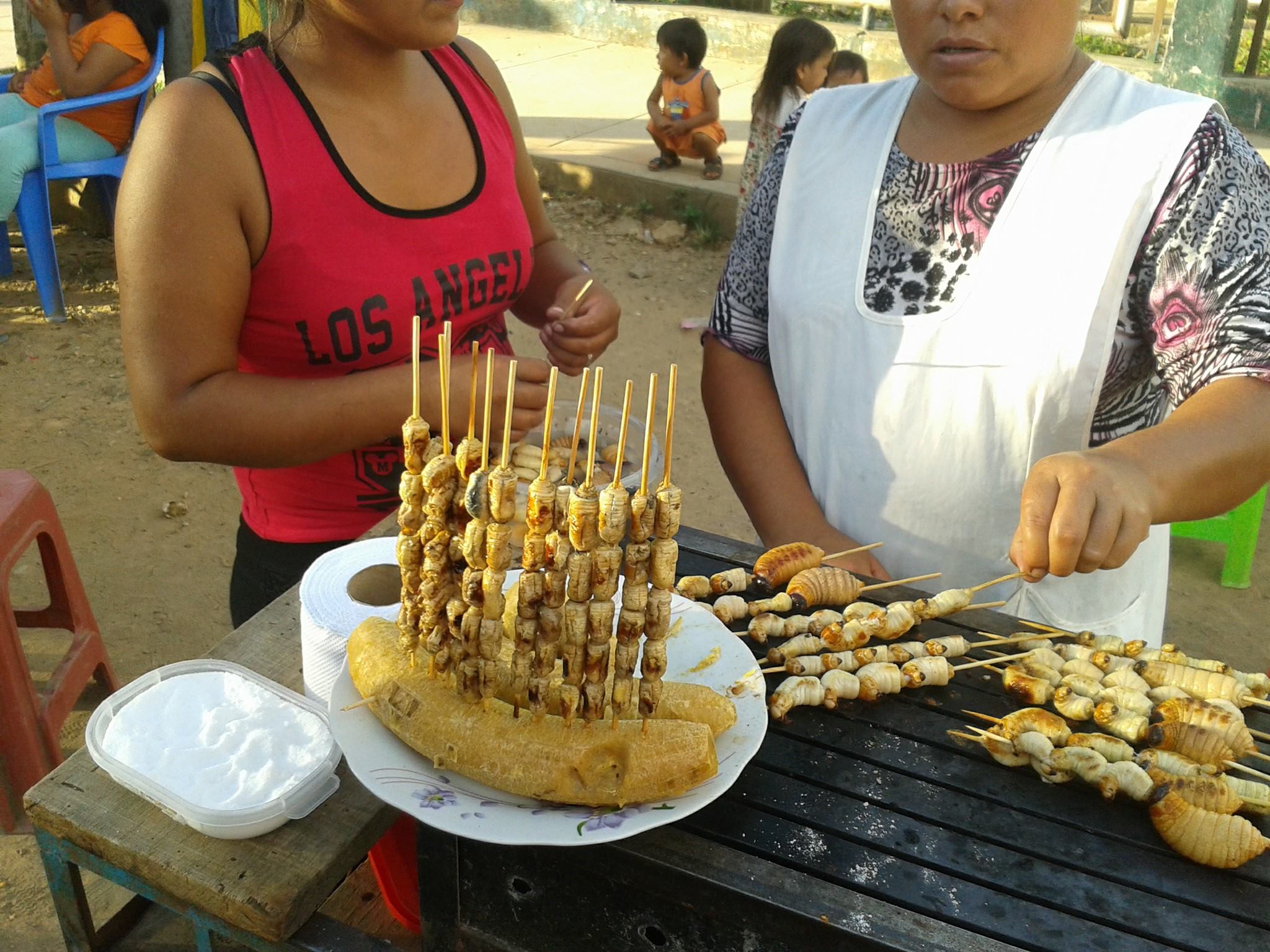 Suri – smažené nebo grilované larvy nosatců.