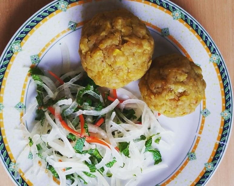 Tacacho – moje nejoblíbenější! Jsou to smažené banány na vaření (plantainy) rozšťouchané a vytvarované do tvaru koule. Často podávané s grilovaným masem, ale můžete si to dát i samotné.