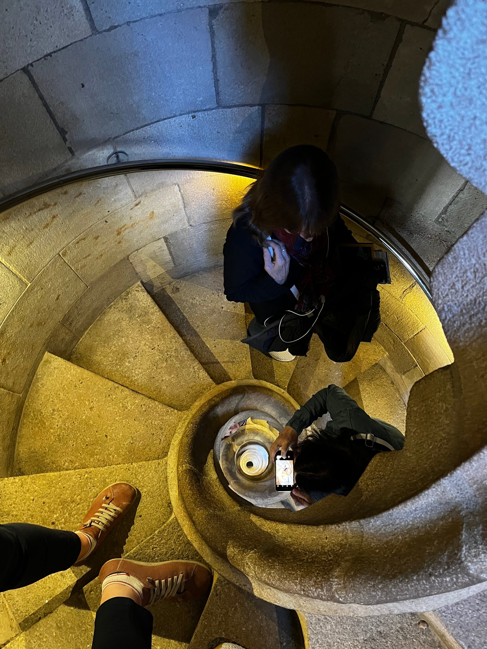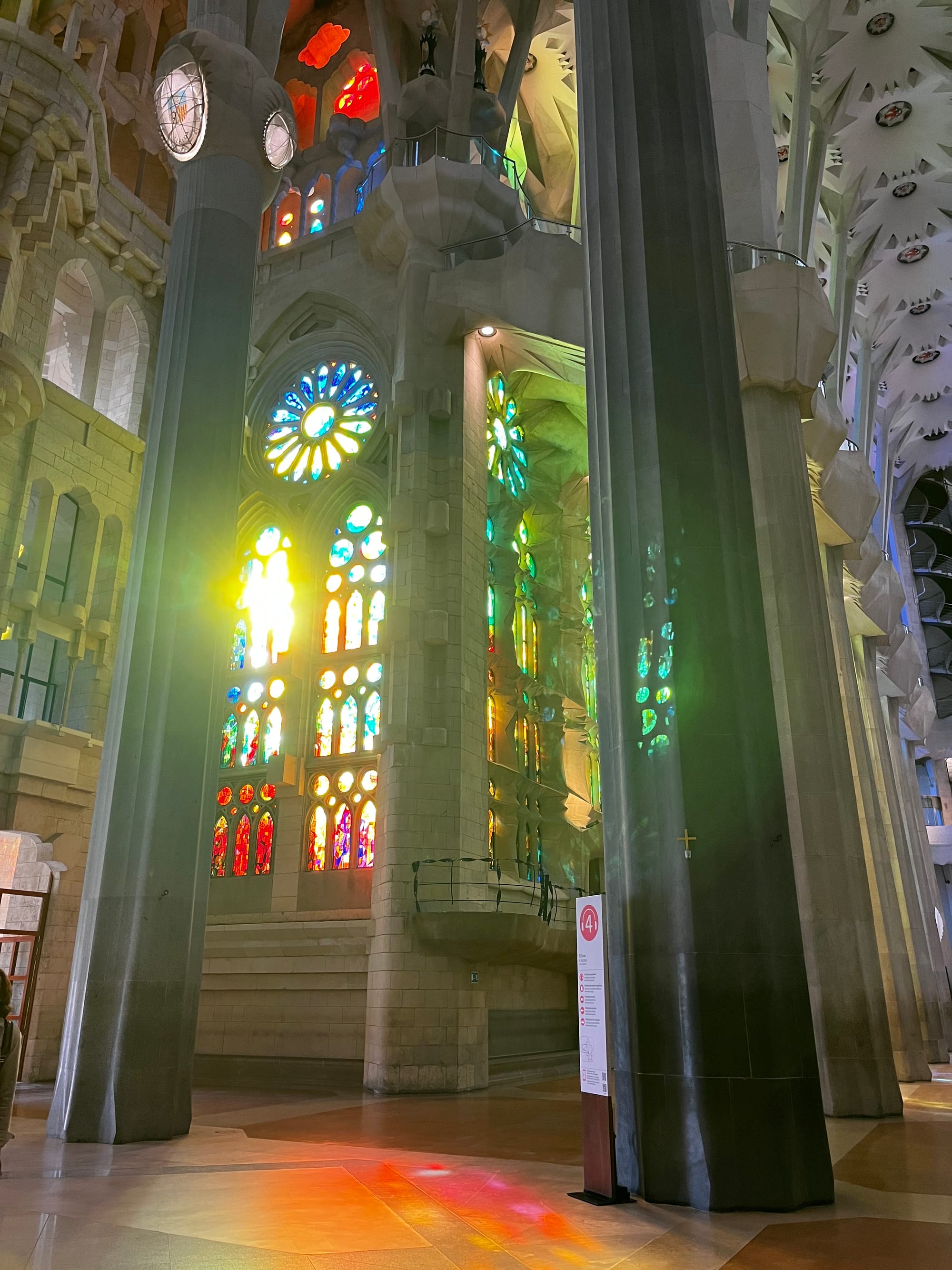 Koncem dubna 2023 jsme byly v katedrále ráno “skoro sami” a tuto radu už využilo mnoho našich kamarádů a studentů a funguje. Ranní světlo dělá divy, je to nádhera. Paprsky slunce prosvítají přes vitráže a máte možnost si prostor vychutnat v tichosti. Za to to ranní vstávání a včasný nákup vstupenek (maximálně 2 měsíce dopředu) stojí. Ve chvíli, kdy do katedrály začnou proudit davy, ty se výtahem vzneseš na jednu z věží a až se dokocháš, začneš po otáčivém schodišti sestupovat zpět do hlavní lodi katedrály.